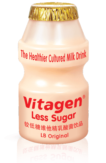 Spurred by the belief that good health begins with a good digestive system, VITAGEN Less Sugar is the first and only cultured milk drink in Singapore that contains both probiotics and prebiotics (dietary fibre). It is also specially formulated to contain 8x less white sugar than other regular cultured milk drinks. VITAGEN Less Sugar is truly in a league of its own.