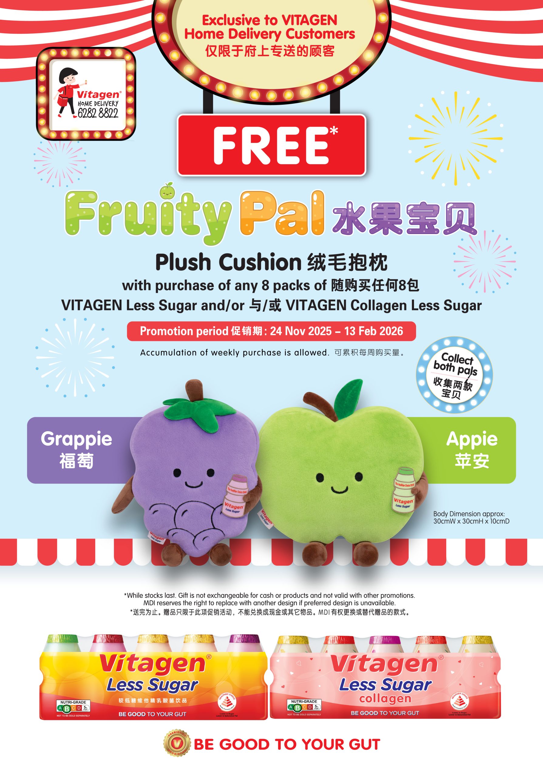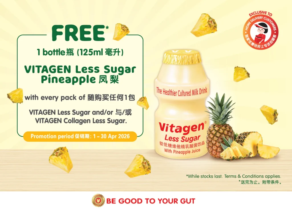 You may also consider drinking cultured milk as a healthy yet yummy beverage. For example, VITAGEN Less Sugar contains 50 per cent lesser sugar than other regular cultured drinks in the market, and on top that that, contains prebiotics and probiotics to keep your gut healthy.